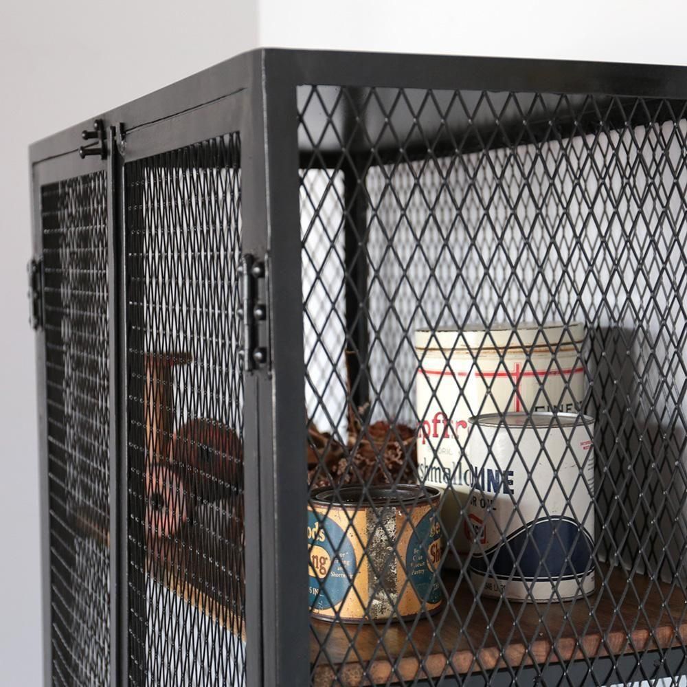 ▮魅せる収納を演出するメッシュキャビネット全体的にメッシュになっていることで魅せる収納となります。網の隙間から見えるお気に入りのコレクタブルなもの。乱雑に置いた小物たちもいつも以上に輝いて見えます。▮インテリアに馴染む無骨さと温もりを併せ持つ収納アイアンと古材の組み合わせの、インダストリアルな雰囲気の収納。鉄製ですが、どの様な空間にもマッチし場所を選びません。アンティーク雑貨を並べても違和感なく雰囲気を演出します。天然木の棚板は2cm厚でしっかりとしています。78×36cmサイズで収納力も十分。お好きなものをたくさん飾っていただけます。海外製特有の綺麗ではないアイアンが、味があり良い意味での雑さがリアルさを演出します。