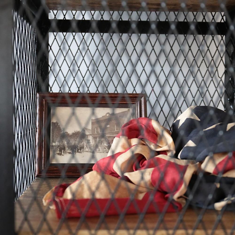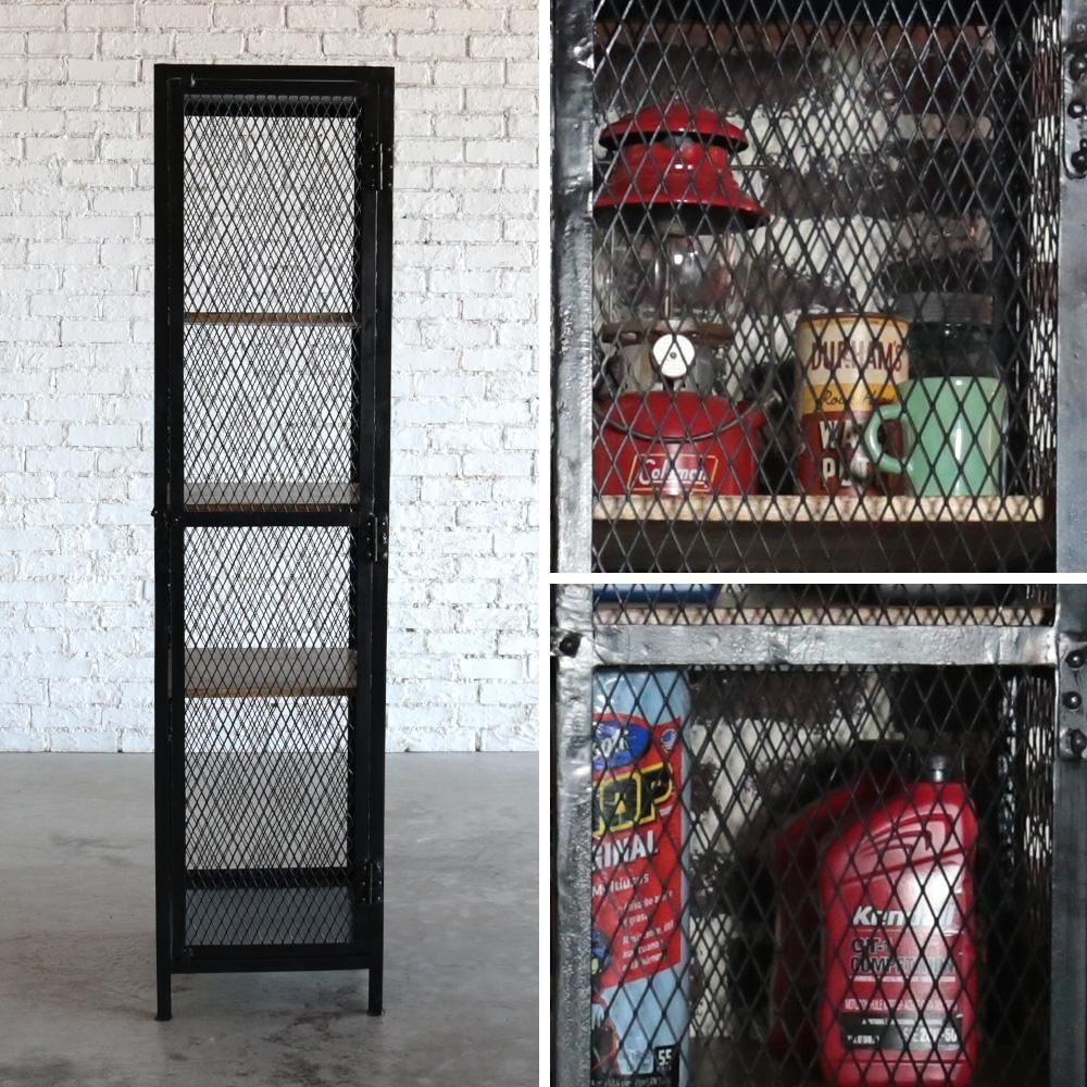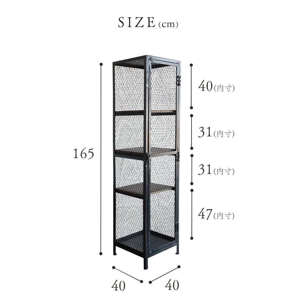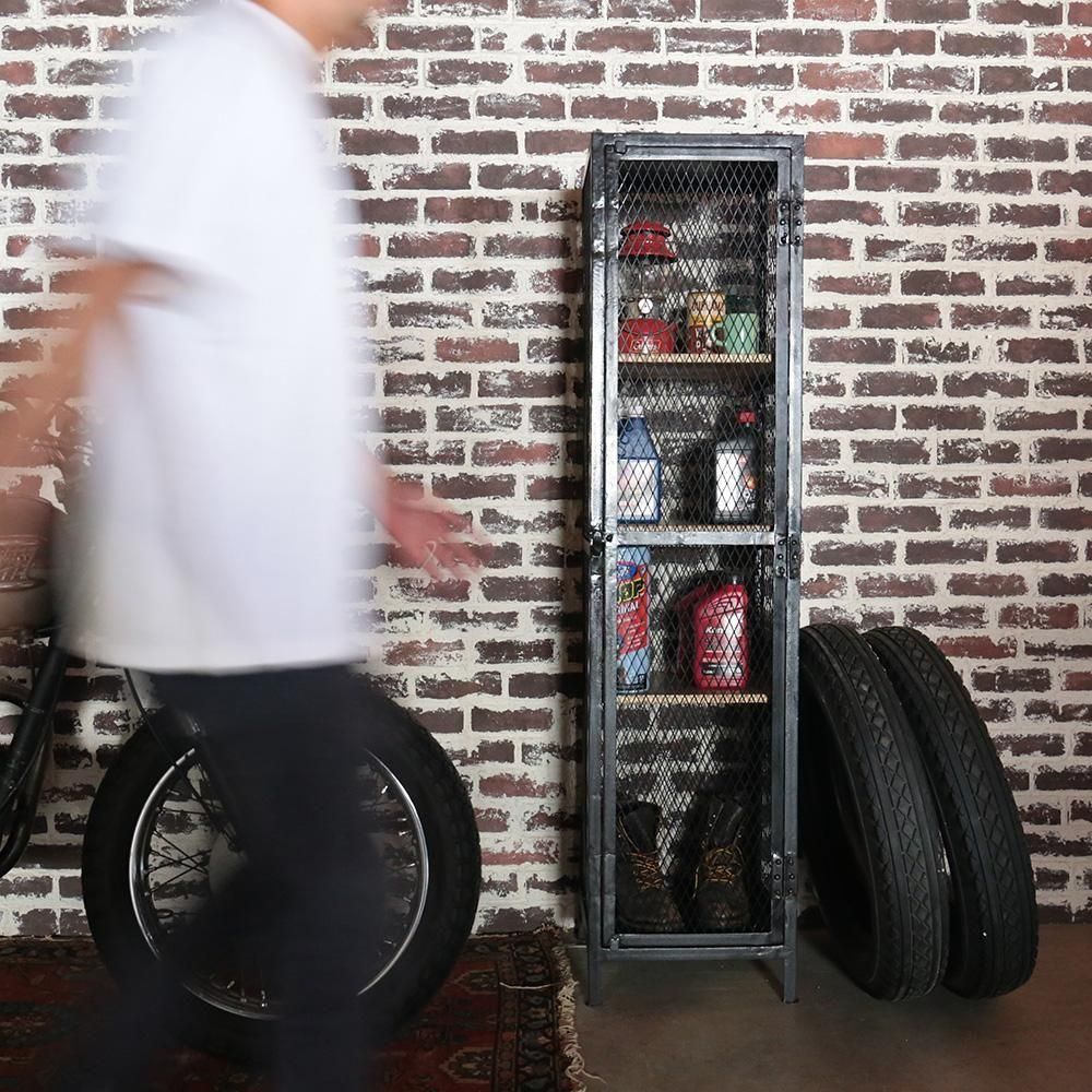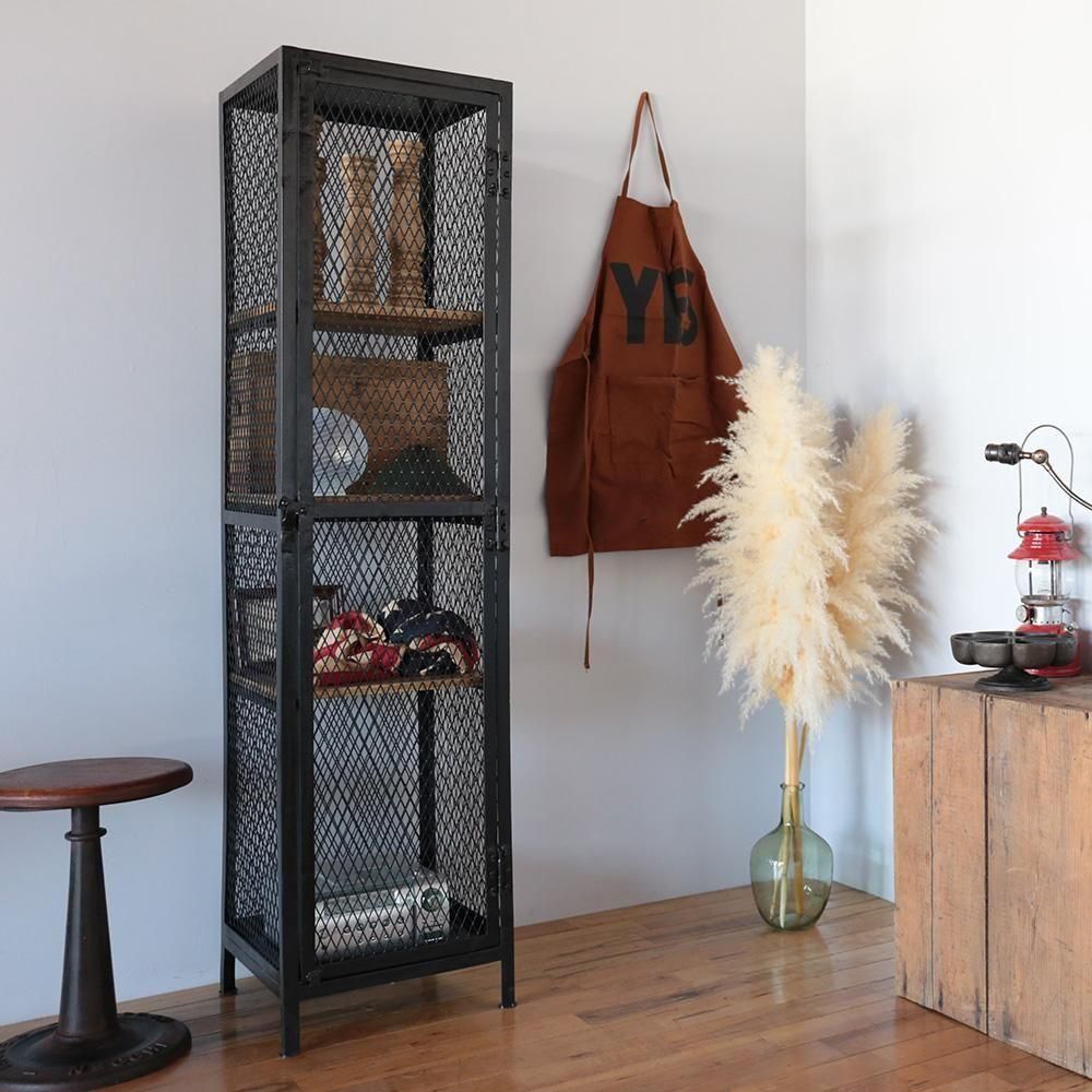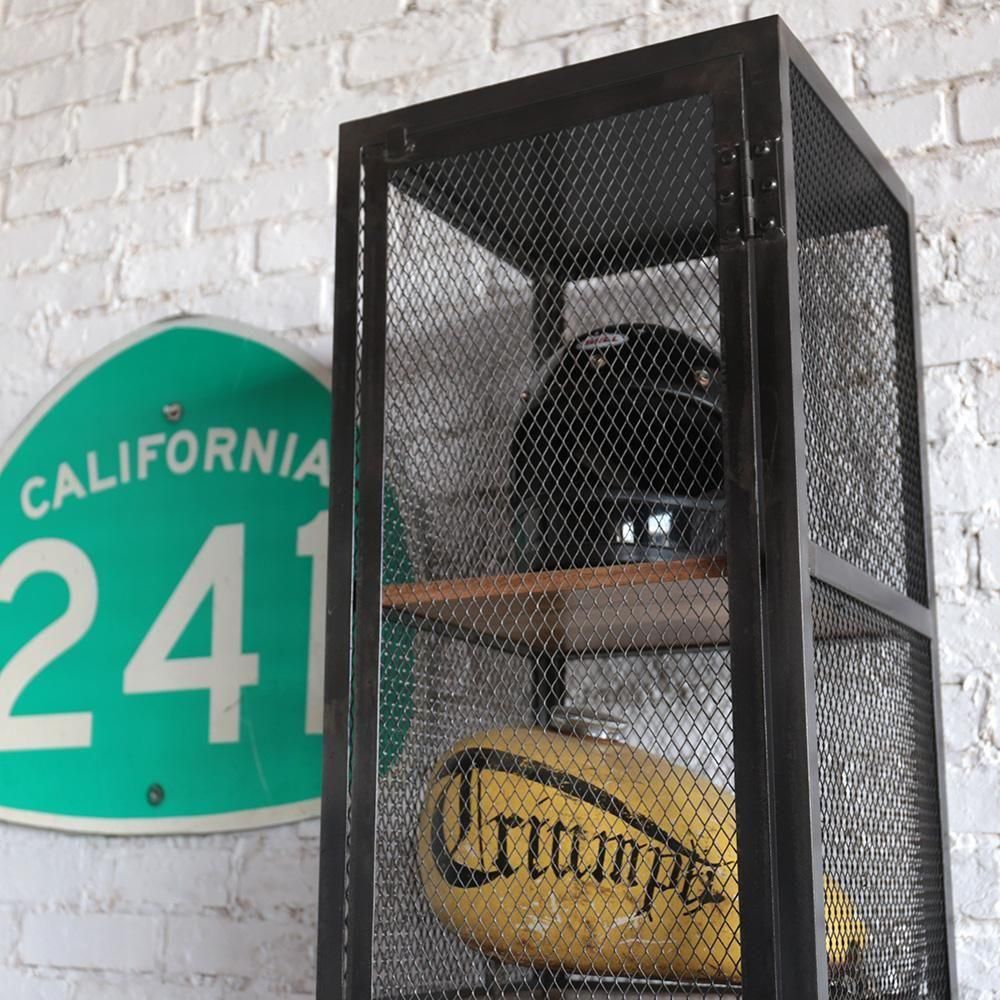▮魅せる収納を演出するメッシュキャビネット全体的にメッシュになっていることで魅せる収納となります。網の隙間から見えるお気に入りのコレクタブルなもの。乱雑に置いた小物たちもいつも以上に輝いて見えます。▮インテリアに馴染む無骨さと温もりを併せ持つ収納アイアンと古材の組み合わせの、インダストリアルな雰囲気の収納。鉄製ですが、どの様な空間にもマッチし場所を選びません。アンティーク雑貨を並べても違和感なく雰囲気を演出します。天然木の棚板は1.5cm厚でしっかりとしています。38×36cmサイズで収納力も十分。お好きなものをたくさん飾っていただけます。海外製特有の綺麗ではないアイアンが、味があり良い意味での雑さがリアルさを演出します。
