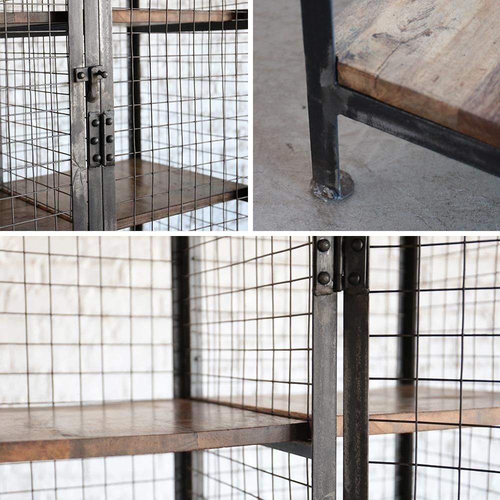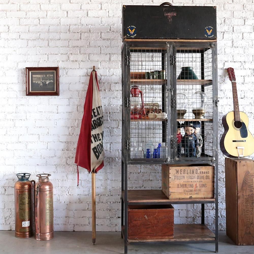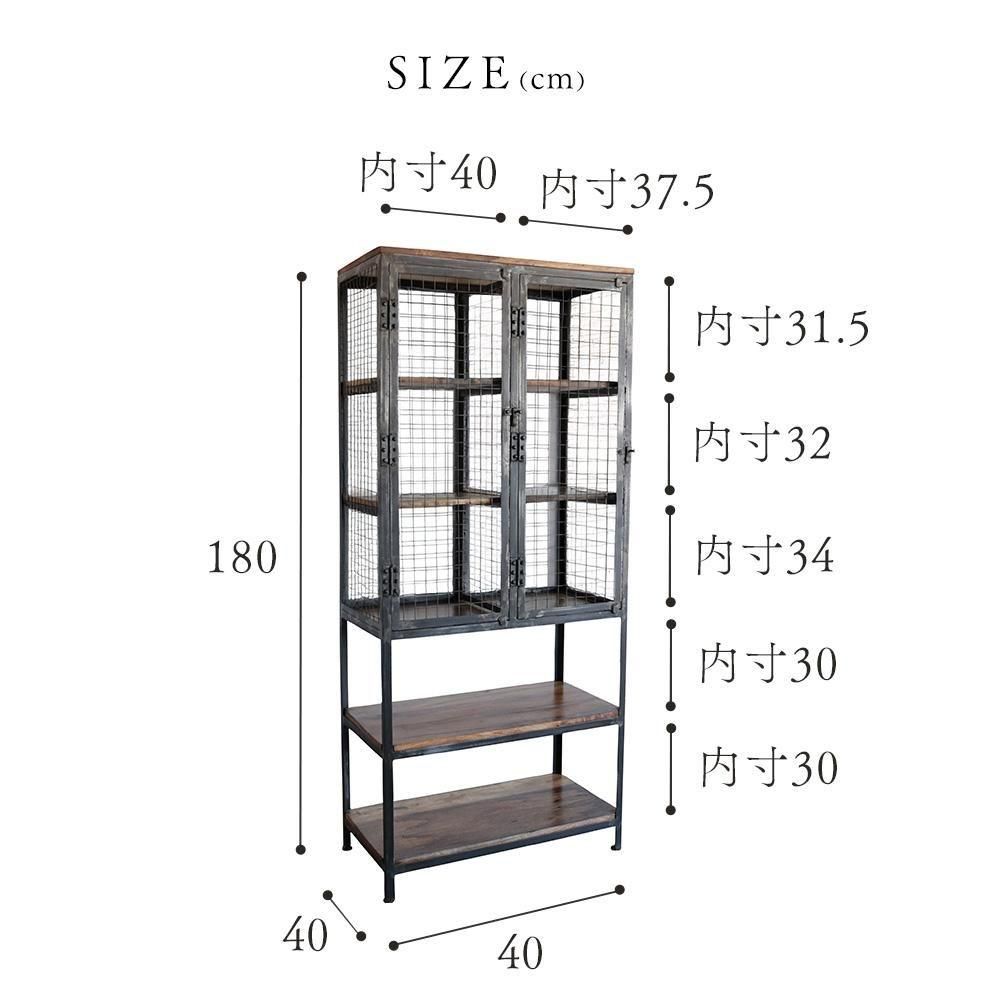 ▮無駄のないスッキリとした外観のキャビネットコンパクトでありながら十分な収納力。高さのあるデザインで、お部屋の縦の空間を有効活用できます。▮実用性とデザイン性をどちらも叶えるインダストリアルな収納使いやすさだけでなく、ディスプレイとしても楽しんでいただけるようにデザイン性にもこだわりました。スチールと古材の組み合わせで、インダストリアルな雰囲気のオープン収納。ご自宅や店舗で、日常使いの収納棚としても、お気に入りを飾るディスプレイ棚としてもお使いいただけます。アンティークの木箱とも相性抜群。メッシュ部分にはフック等ハンキングアイテムをかけることもできます。通気性の良さを活かして、お気に入りのグリーンやクローゼットにしまい込みたくない衣類を置いても。左右どちらも左開き仕様。開閉時の鉄の合さる音が男くさく、雰囲気が良いです。▮使い込んだアンティークのような風合いを演出アンティーク商品によく見られるような金属の色ムラやキズ、メッシュの歪み等があります。よりアンティークらしさを楽しむために敢えて施しております。無骨な雰囲気と古い傷のような味わいをお楽しみください。